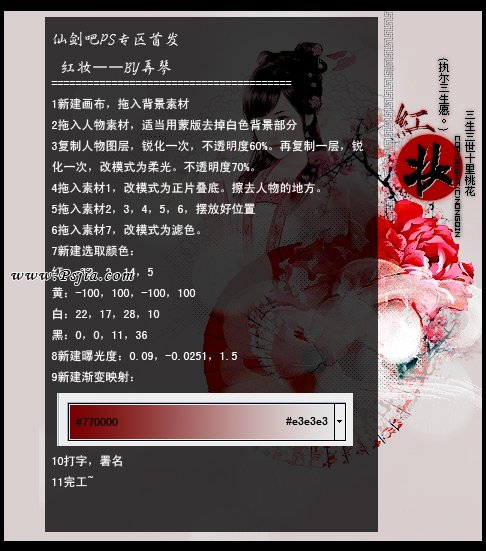 效果圖: 教程作業圖效一 教程作業圖效二 教程: 教程第九步漸變之后改模式為深色 原圖: 素材1 素材